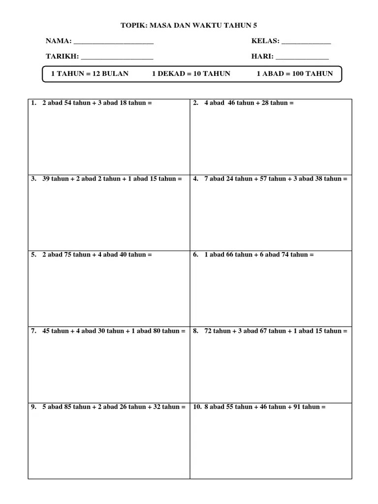 Latih tubi masa dan waktu (bahagi). Himpunan soalan latih tubi matematik tahun 3. 35,148 views jun 13, 2021 jom belajar cara untuk menukar unit dari minit ke saat, . Guru bertanya soalan ringkas seperti: Masa dan waktu, add to my workbooks (13) Jom belajar masa dan waktu.tahu tak mcm mana nk sebut masa??meh cikgu ajarkan.